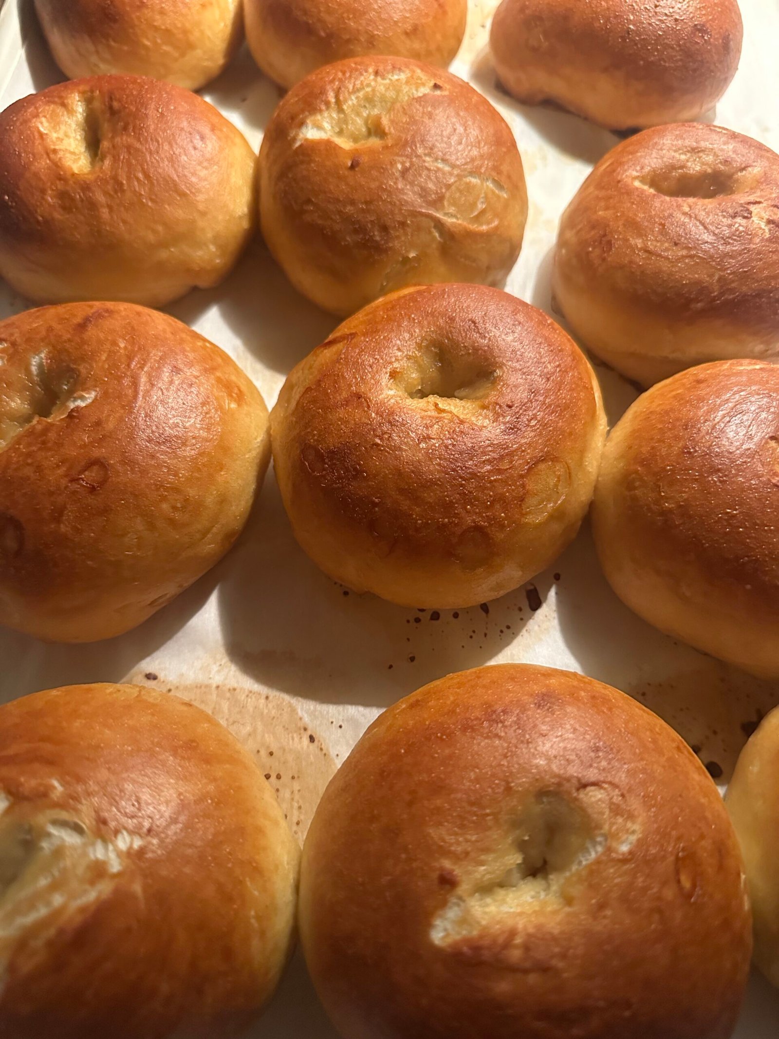Bread flour, water, sourdough starter, honey, salt, baking soda (for boiling)